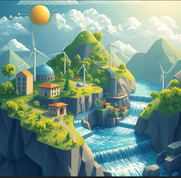The reflection? A vibrant, green future shaped by low-carbon energy, with a healthier child sitting amidst lush nature.
